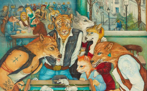 Cette seconde collection "Les loulous de Montmartre" comprend dix œuvres réalisées en tempéra-acrylique sur bois. La taille de chacune des œuvres est de 90 cm x 100 cm. Elle est le fruit de cinq années de travail de 2005 à 2010. Vous pouvez les découvrir ci-dessous, en haute résolution (HR), en cliquant sur l'image ou sur les liens placés sous l'image. LIEN POUR DÉCOUVRIR L'ŒUVRE EN HR LIEN POUR COMPRENDRE LE CONTEXTE LA VRAIE PETITE HISTOIRE
